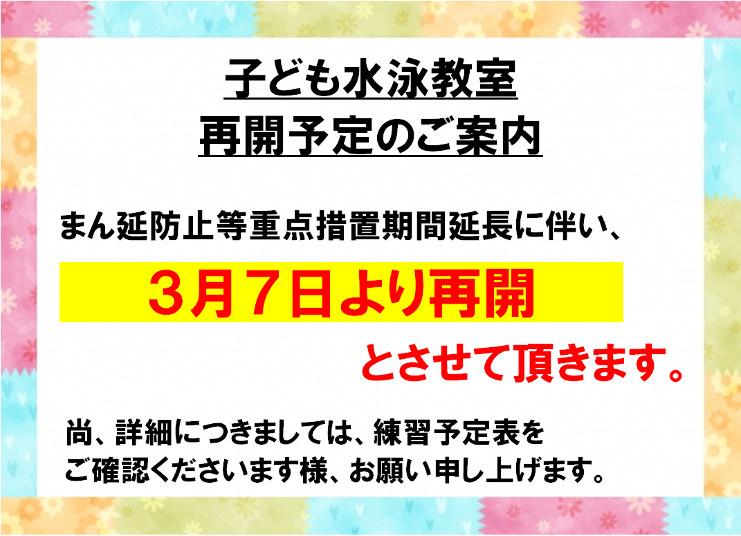スクール再開予定