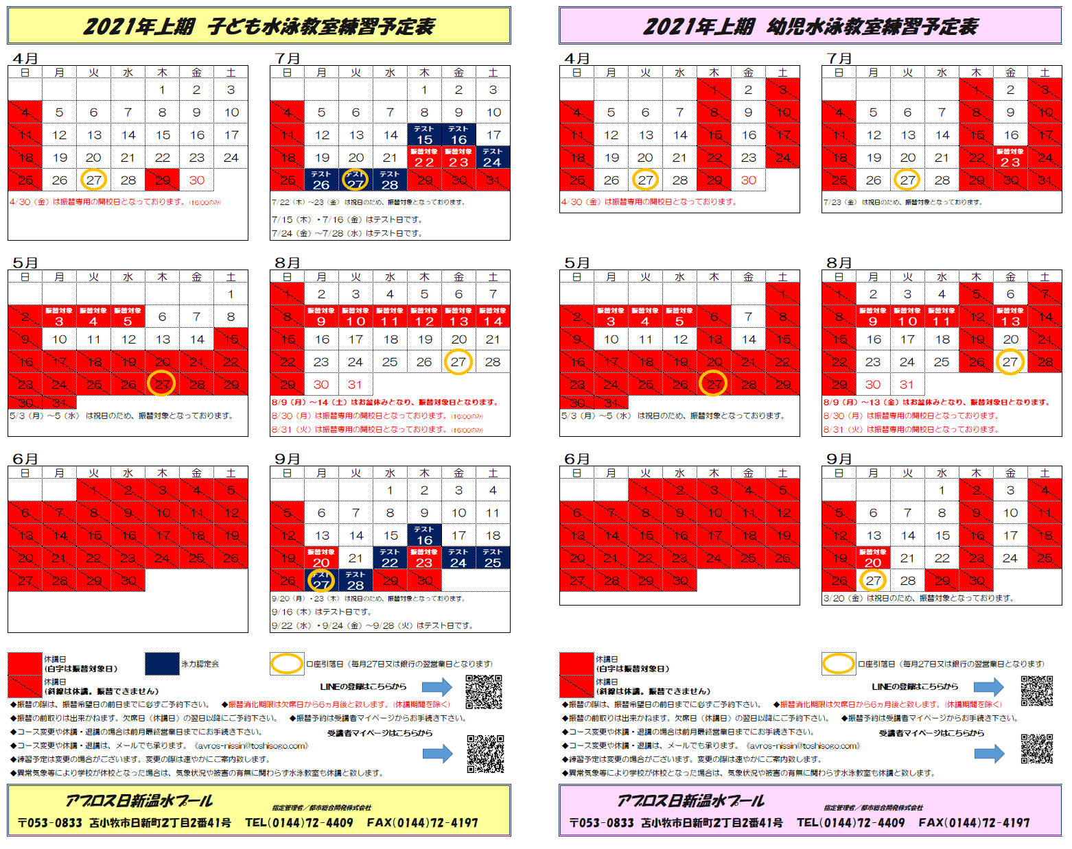 スクール予定表